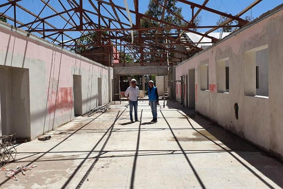 En la Escuela Primaria 232, en Ingeniero Huergo, ya se inició la reconstrucción del techo del edificio y se encuentran en la etapa final las ampliaciones que contemplan un nuevo Salón de Usos Múltiples y talleres.