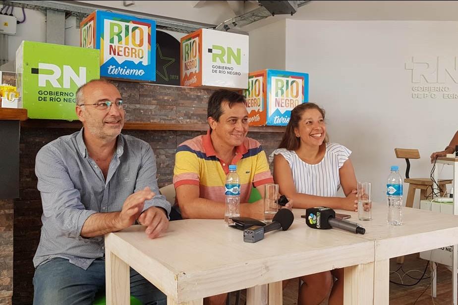 La ministra de Turismo, Cultura y Deporte, Arabela Carreras, encabezó una conferencia de prensa en Las Grutas junto con el secretario de Turismo de Nación, Alejandro Lastra, quien visita las playas rionegrinas.